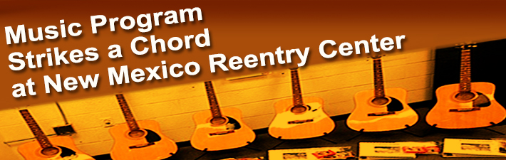 Program residents at the New Mexico Men’s Recovery Academy (NMMRA) in Los Lunas, New Mexico recently started a new music program with the help of The Freedom in Music Project. This New Mexico-based non-profit organization coordinated the donation of guitars, curriculum books/sheet music, music stands, gig bags, tuners, extra batteries, extra strings, cleaning cloths and a humidifier for the facility. The equipment is on loan to NMMRA for as long as the facility participates in the project. Six acoustic guitars were donated by The Fender Music Foundation, an independent public nonprofit that provides musical instruments and equipment for music education programs across the United States.